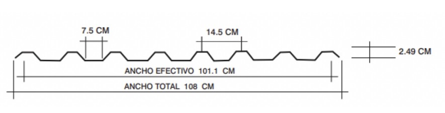 Acanalado trapezoidal, se utiliza en cubiertas de naves industriales donde se requiere mediana capacidad estructural y de desagüe.